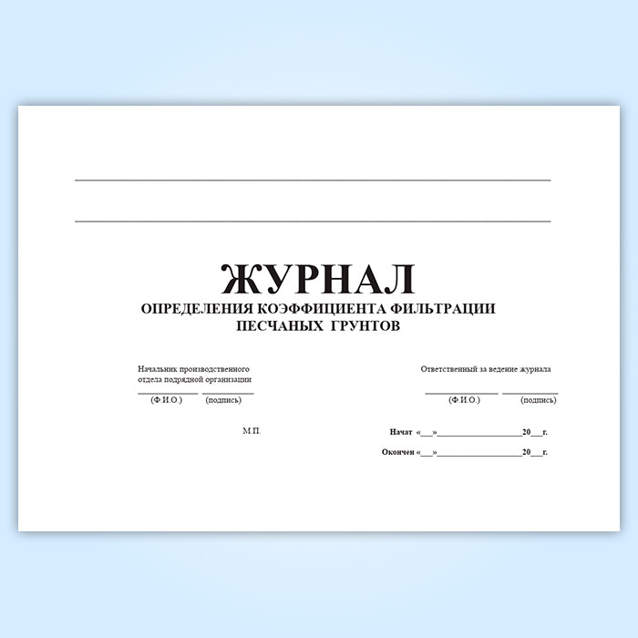 Журнал определения коэффициента фильтрации песчаных грунтов в Сочи купить