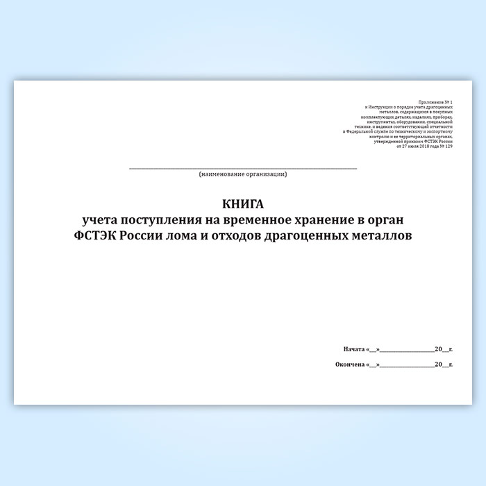 Книга учета поступления на временное хранение в орган ФСТЭК России лома и отходов драгоценных металлов в Сочи купить