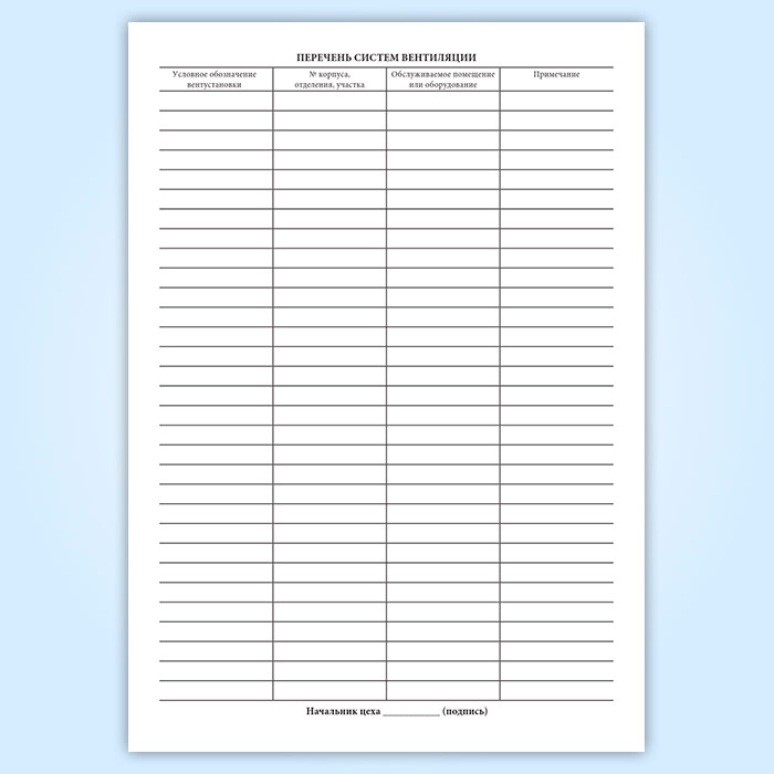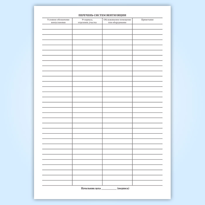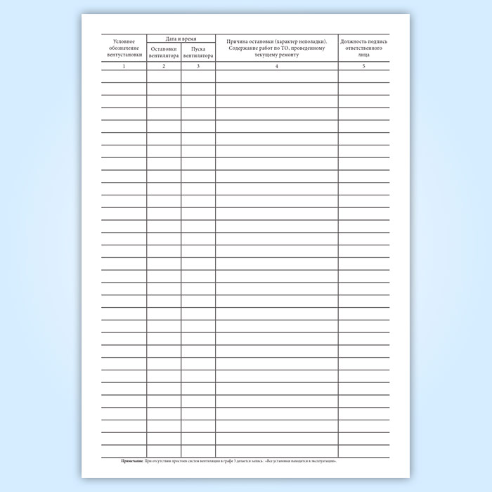 Журнал по эксплуатации и техническому обслуживанию систем вентиляции в Сочи купить