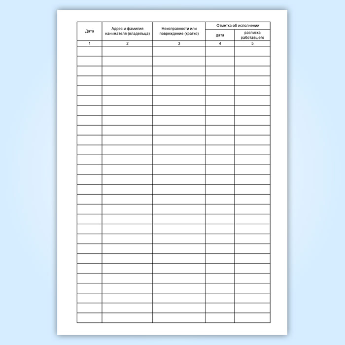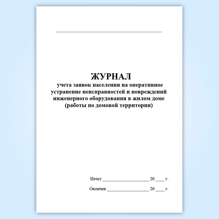 Журнал учета заявок населения на оперативное устранение неисправностей и повреждений инженерного оборудования в жилом доме (работы по домовой территории) в Сочи купить