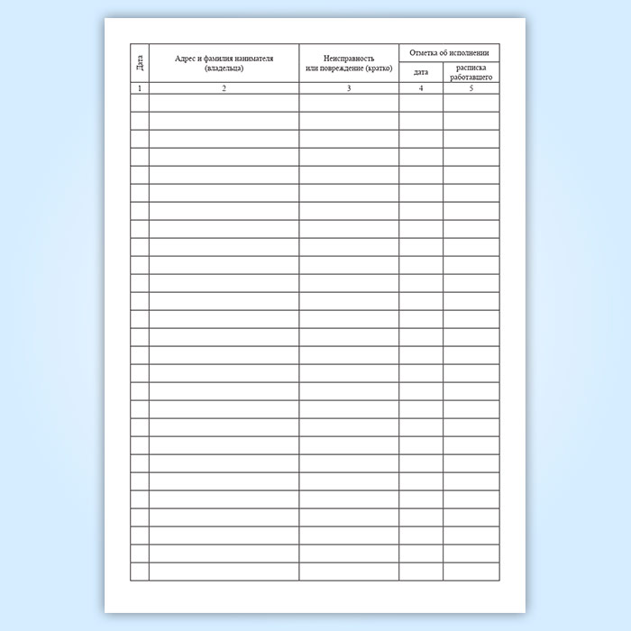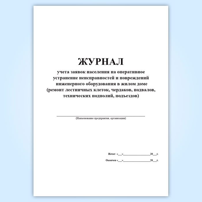Журнал учета заявок населения на оперативное устранение неисправностей и повреждений инженерного оборудования в жилом доме ремонт лестничных клеток, чердаков, подвалов, технических подполий, подъездов в Сочи купить