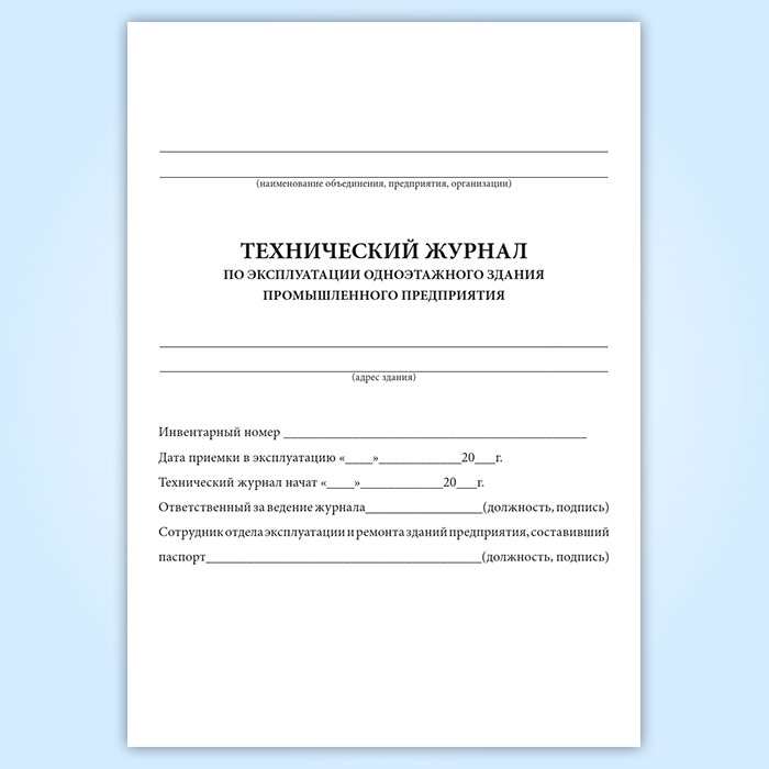 Технический журнал по эксплуатации одноэтажного здания промышленного предприятия в Сочи купить