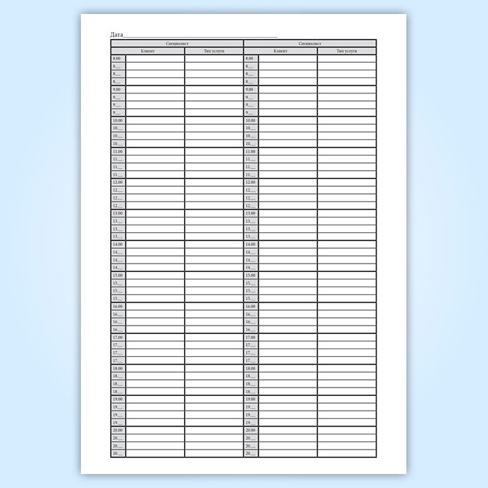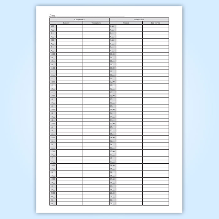 Журнал администратора для почасовой записи в Сочи купить