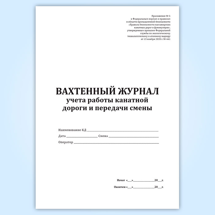 Вахтенный журнал учета работы канатной дороги и передачи смены в Сочи купить