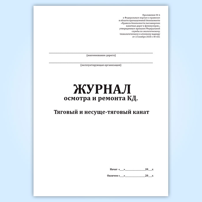 Журнал осмотра и ремонта канатной дороги. Тяговый и несуще-тяговый канат (форма № 2) в Сочи купить