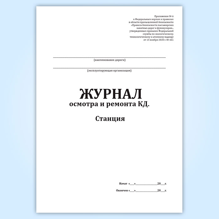 Журнал осмотра и ремонта канатной дороги. Станция (форма № 7) в Сочи купить
