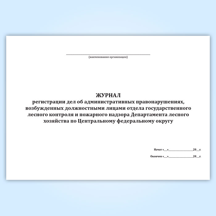 Журнал регистрации дел об административных правонарушениях, возбужденных должностными лицами отдела государственного лесного контроля и пожарного надзора Департамента лесного хозяйства по Центральному федеральному округу в Сочи купить