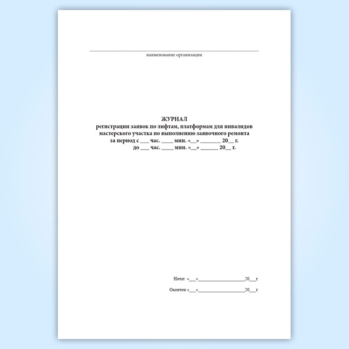 Журнал регистрации заявок по лифтам, платформам для инвалидов мастерского участка по выполнению заявочного ремонта в Сочи купить