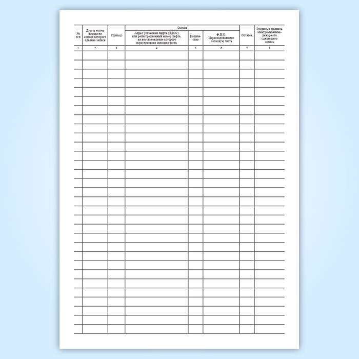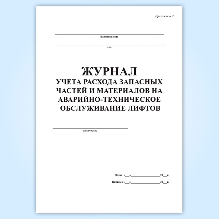 Журнал учета расхода запасных частей и материалов на аварийно-техническое обслуживание лифтов в Сочи купить