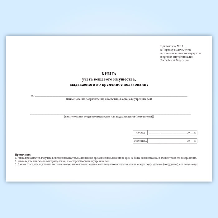 Книга учета вещевого имущества, выдаваемого во временное пользование в Сочи купить