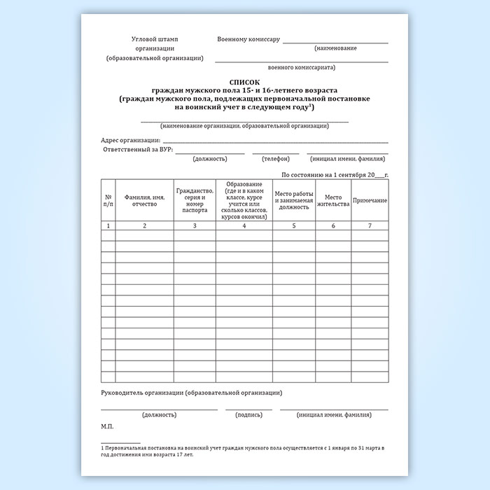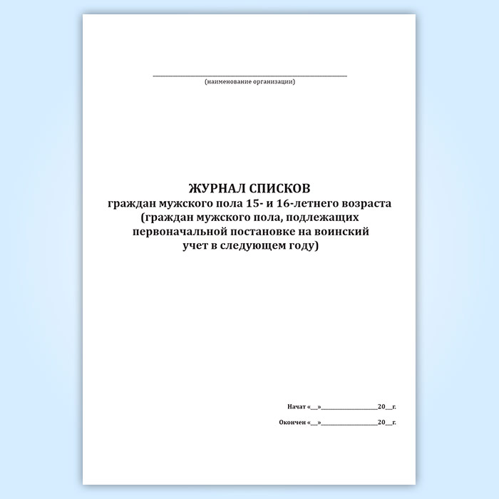 Журнал списков граждан мужского пола 15- и 16-летнего возраста (граждан мужского пола, подлежащих первоначальной постановке на воинский учет в следующем году) в Сочи купить