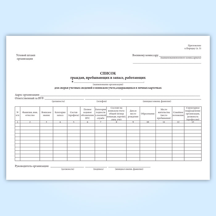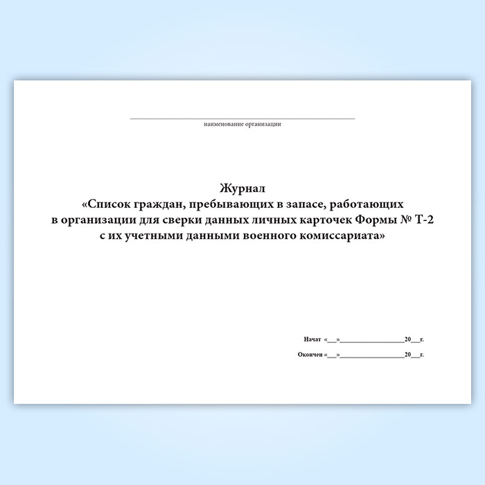 Журнал «Список граждан, пребывающих в запасе, работающих в организации для сверки данных личных карточек Формы № Т-2 с их учетными данными военного комиссариата» в Сочи купить