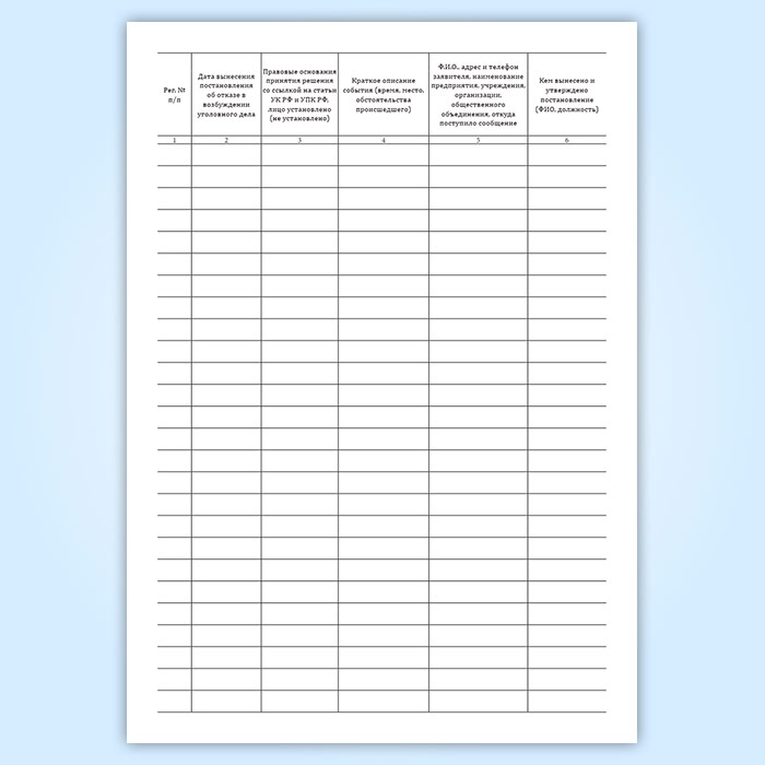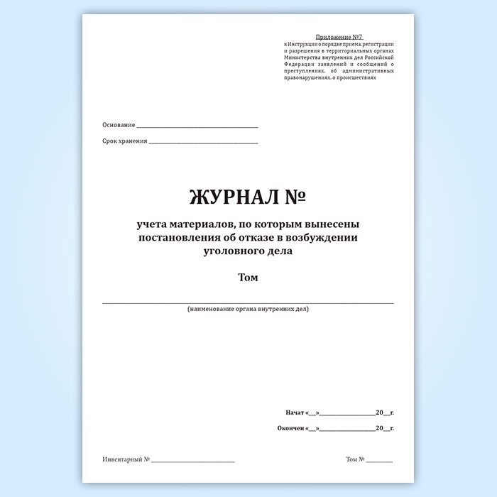 Журнал учета материалов, по которым вынесены постановления об отказе в возбуждении уголовного дела в Сочи купить