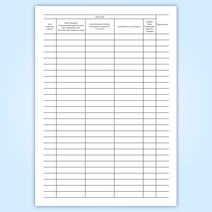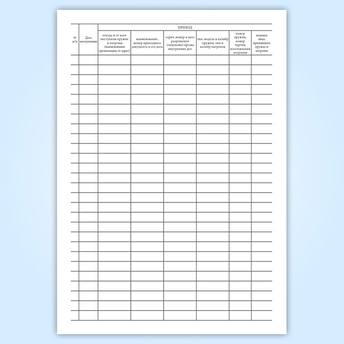 Книга учета наличия и движения поступающего, хранящегося и выдаваемого (проданного) оружия и патронов в Сочи купить