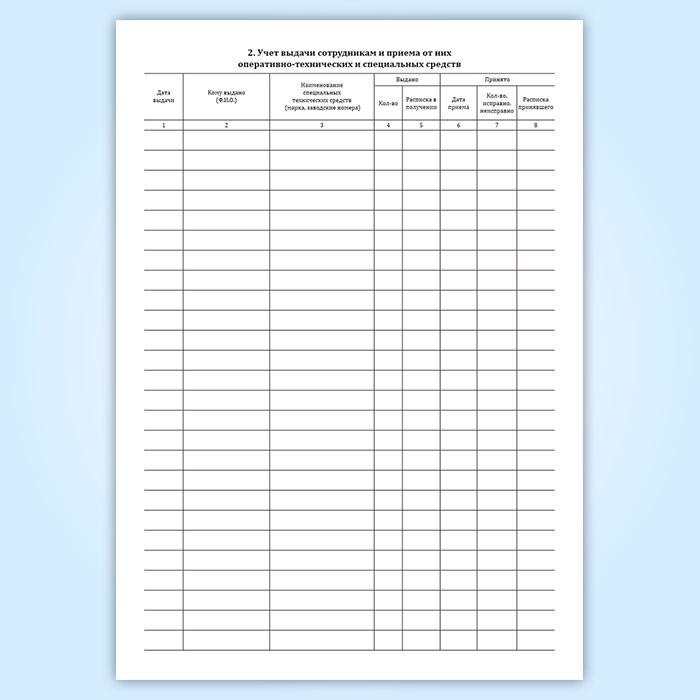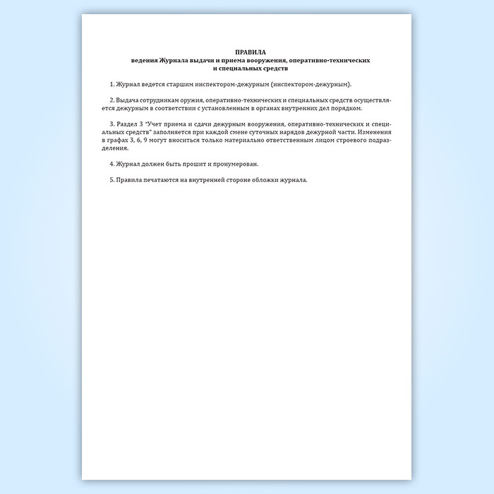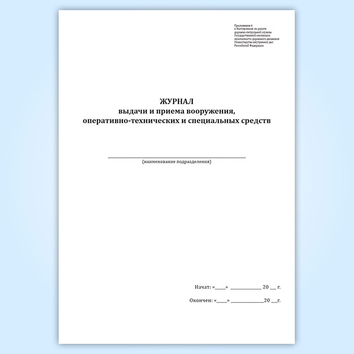 Журнал выдачи и приема вооружения, оперативно-технических и специальных средств в Сочи купить