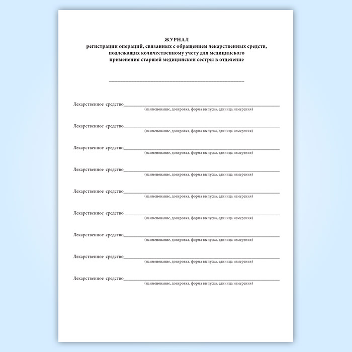 Журнал регистрации операций, связанных с обращением лекарственных средств, подлежащих количественному учету для медицинского применения старшей медицинской сестры в отделение в Сочи купить