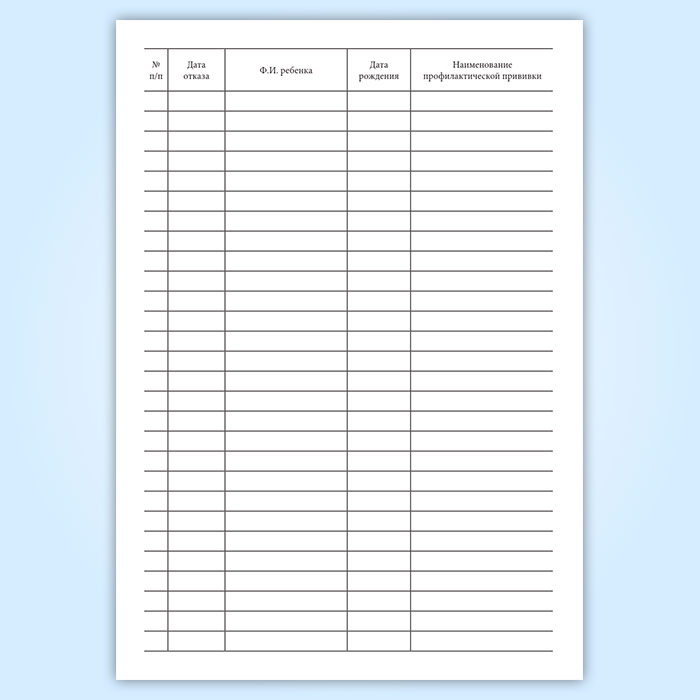Журнал регистрации отказов от профилактических прививок в Сочи купить