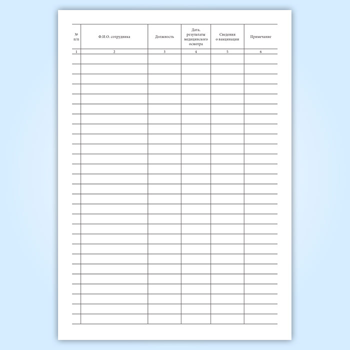 Журнал регистрации результатов медицинских осмотров и иммунизации сотрудников в Сочи купить