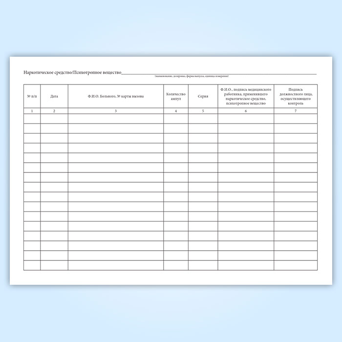 Журнал регистрации операций, связанных с оборотом наркотических средств и психотропных веществ, старшего по бригаде медицинского работника в Сочи купить