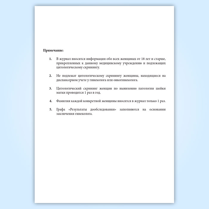 Журнал учета цитологического скрининга женщин по выявлению патологии шейки матки в Сочи купить