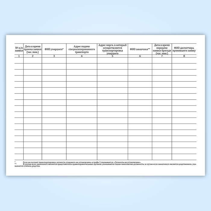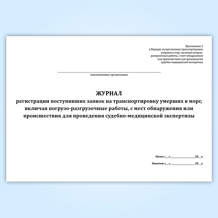 Журнал регистрации поступивших заявок на транспортировку умерших в морг, включая погрузо-разгрузочные работы, с мест обнаружения или происшествия для проведения судебно-медицинской экспертизы в Сочи купить