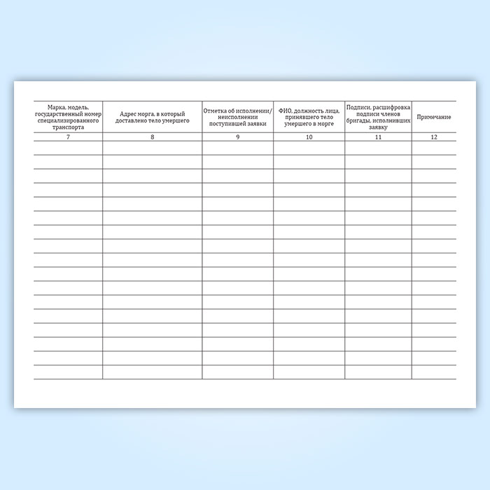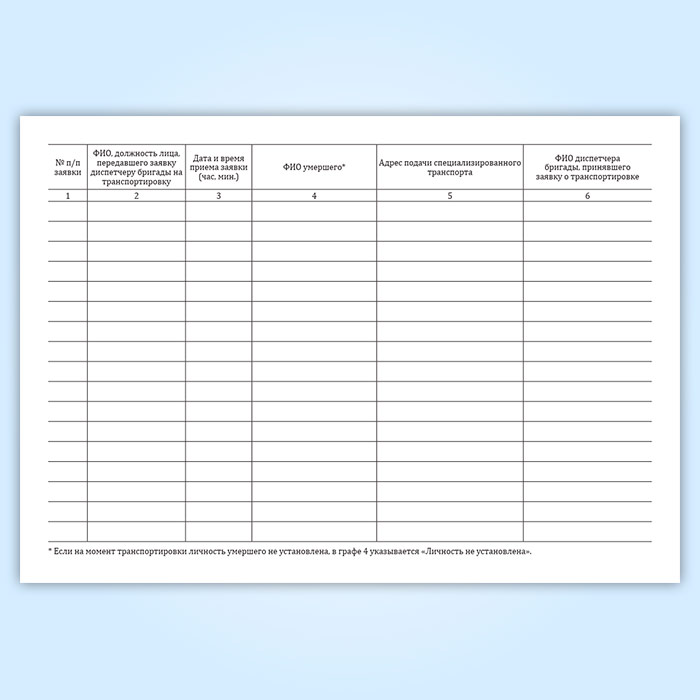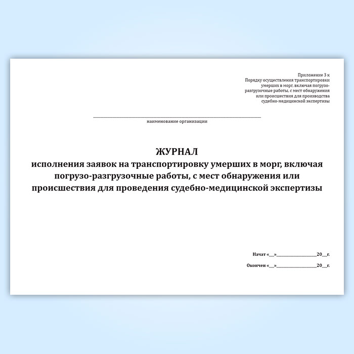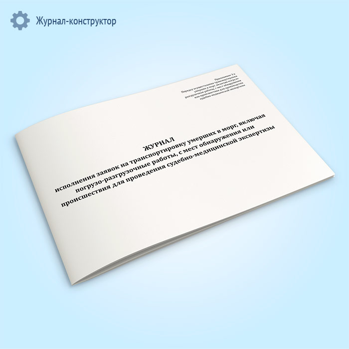 Журнал исполнения заявок на транспортировку умерших в морг, включая погрузо-разгрузочные работы, с мест обнаружения или происшествия для проведения судебно-медицинской экспертизы в Сочи купить