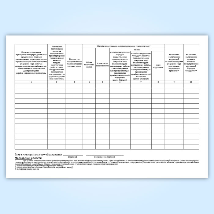 Отчет о реализации государственных полномочий Московской области по транспортировке умерших в морг, включая погрузо-разгрузочные работы, с мест обнаружения или происшествия для производства судебно-медицинской экспертизы в Сочи купить