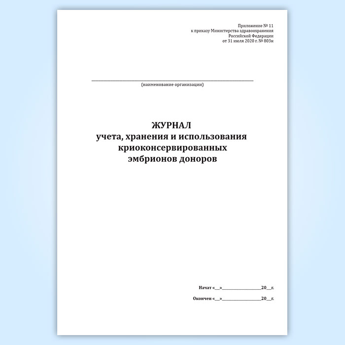 Журнал учета, хранения и использования криоконсервированных эмбрионов доноров в Сочи купить