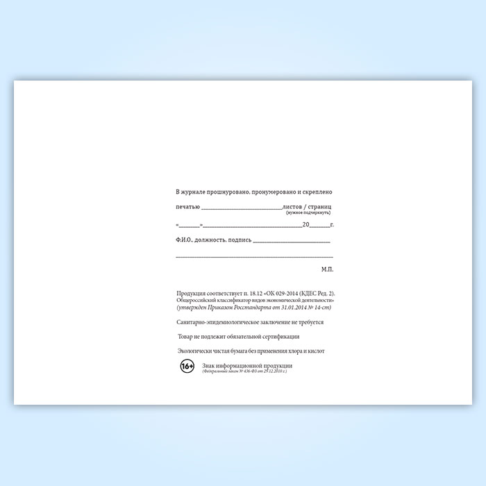 Вы получаете печатную продукцию прошнурованной и c местом для вашей печати в соответствии с действующими нормативными документами: