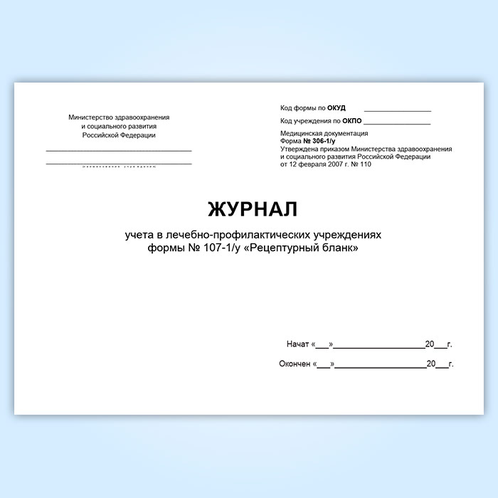 Журнал учета в лечебно-профилактических учреждениях рецептурных бланков формы № 107-1/у (форма № 306-1/у) в Сочи купить