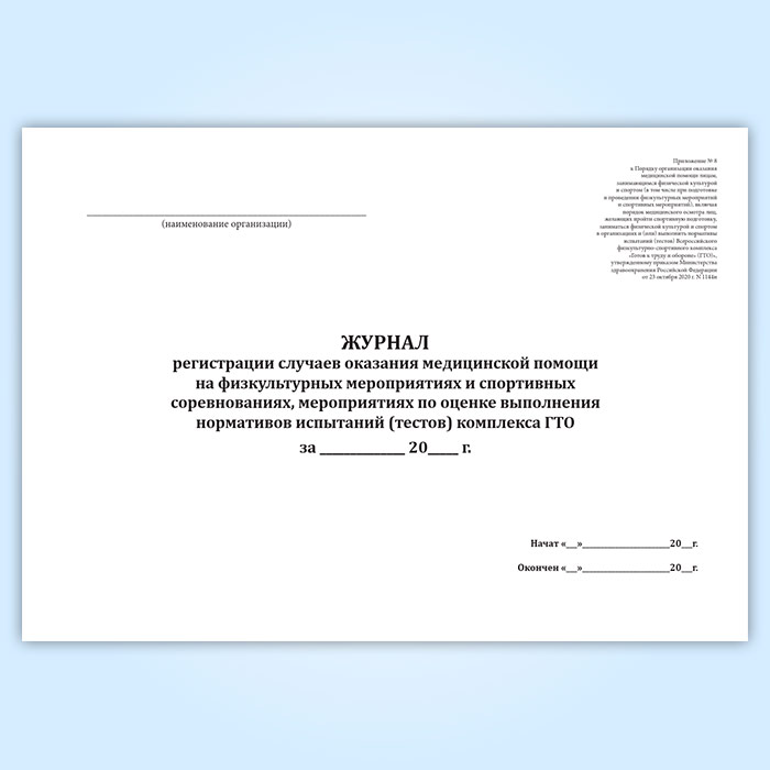 Журнал регистрации случаев оказания медицинской помощи на физкультурных мероприятиях и спортивных соревнованиях, мероприятиях по оценке выполнения нормативов испытаний (тестов) комплекса ГТО в Сочи купить