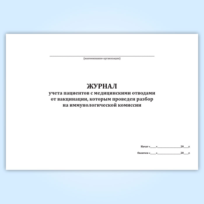Журнал учета пациентов с медицинскими отводами от вакцинации, которым проведен разбор на иммунологической комиссии в Сочи купить