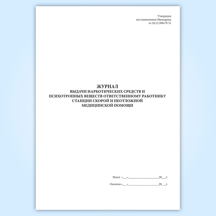Журнал выдачи наркотических средств и психотропных веществ ответственному работнику станции скорой и неотложной медицинской помощи в Сочи купить
