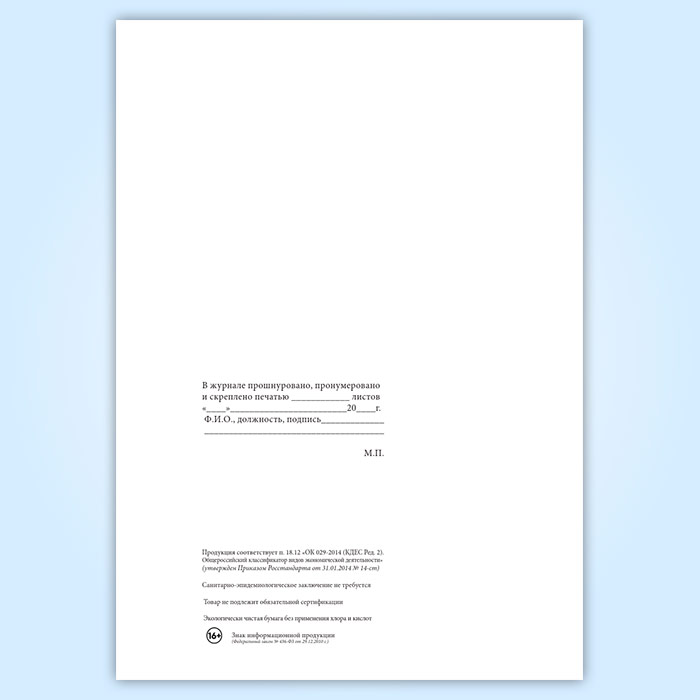 Вы получаете печатную продукцию прошнурованной и c местом для вашей печати в соответствии с действующими нормативными документами: