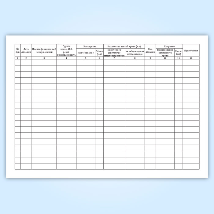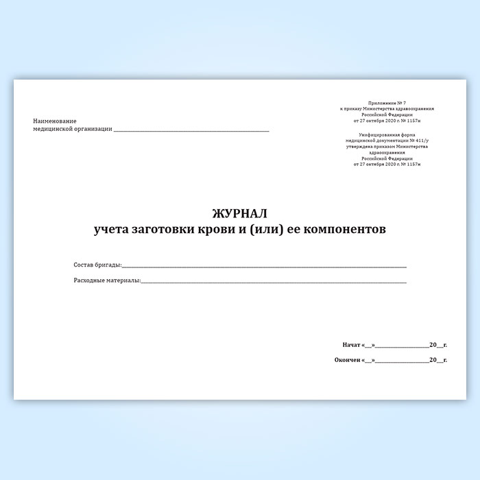Журнал учета заготовки крови и (или) ее компонентов (форма № 411/у) в Сочи купить