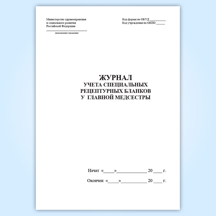 Журнал учета специальных рецептурных бланков у главной медсестры в Сочи купить