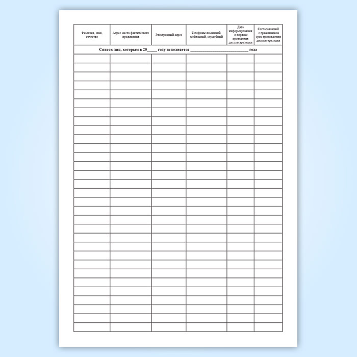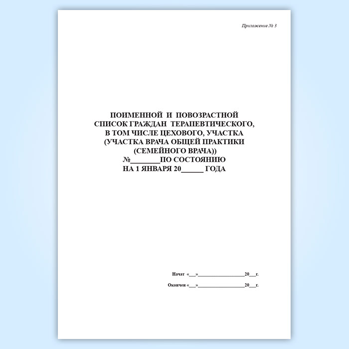 Поименный и повозрастной список граждан терапевтического, в том числе цехового, участка (участка врача общей практики (семейного врача)) в Сочи купить