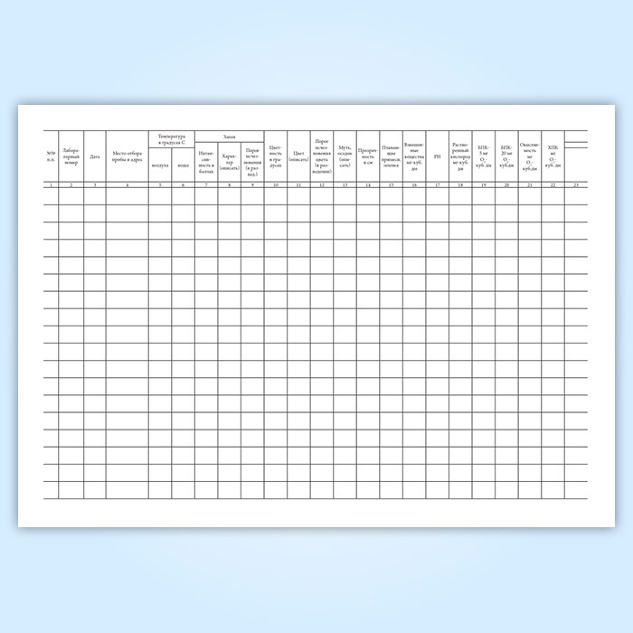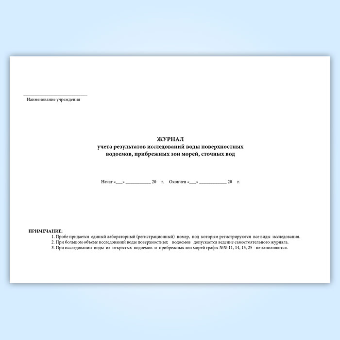 Журнал учета результатов исследований воды поверхностных водоемов, прибрежных зон морей, сточных вод (форма № 324-у) в Сочи купить