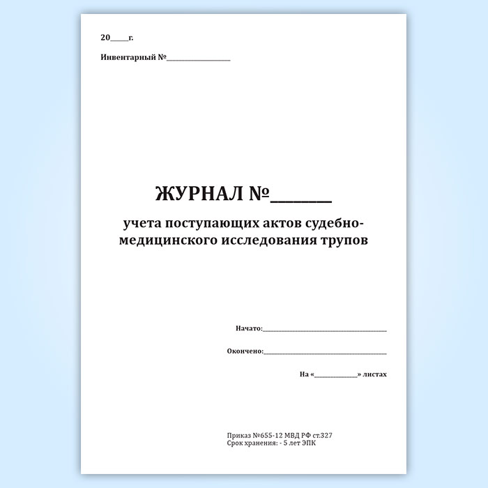 Журнал учета поступающих актов судебно-медицинского исследования трупов в Сочи купить