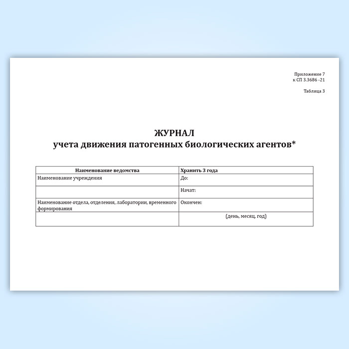 Журнал учета движения патогенных биологических агентов (СанПиН 3.3686-21) в Сочи купить