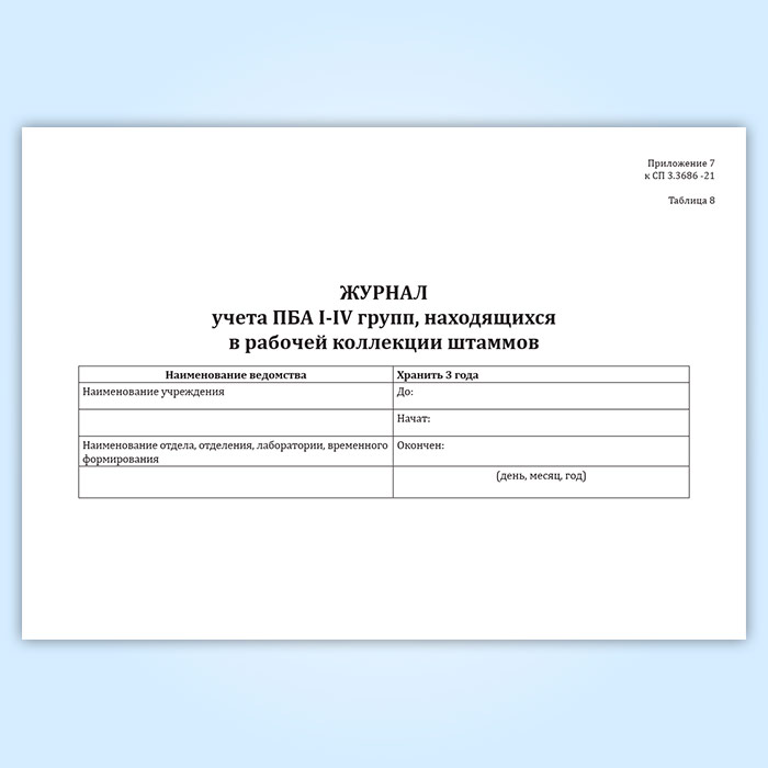 Журнал учета ПБА I-IV групп, находящихся в рабочей коллекции штаммов в Сочи купить
