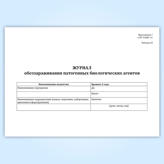 Журнал обеззараживания патогенных биологических агентов (СанПиН 3.3686-21) в Сочи купить