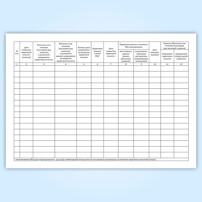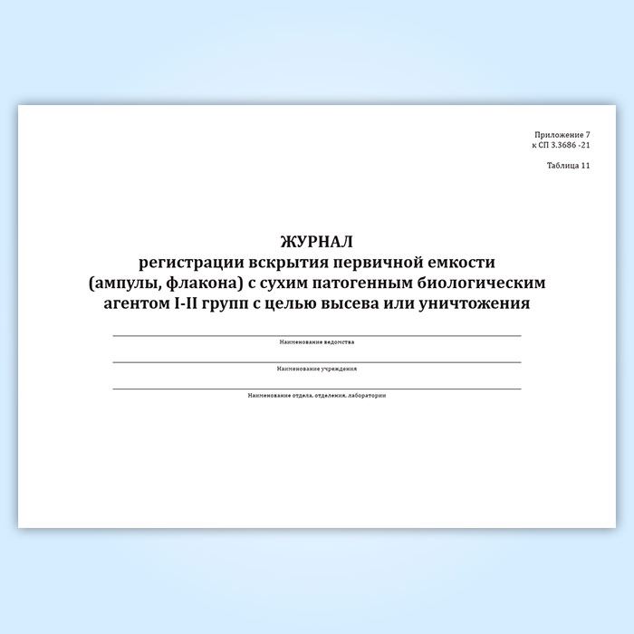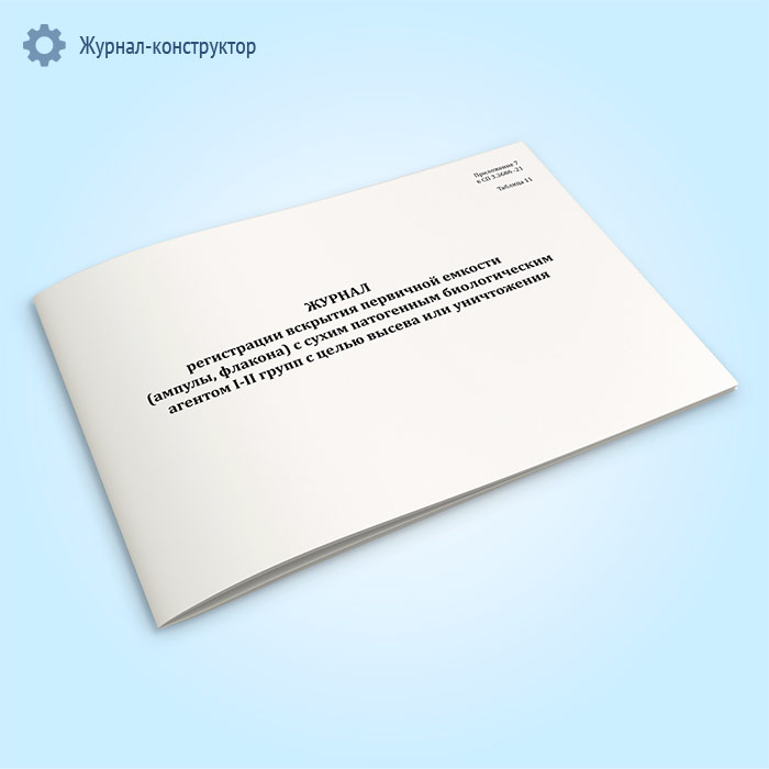 Журнал регистрации вскрытия первичной емкости (ампулы, флакона) с сухим патогенным биологическим агентов I-II групп с целью высева или уничтожения в Сочи купить