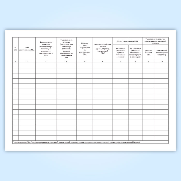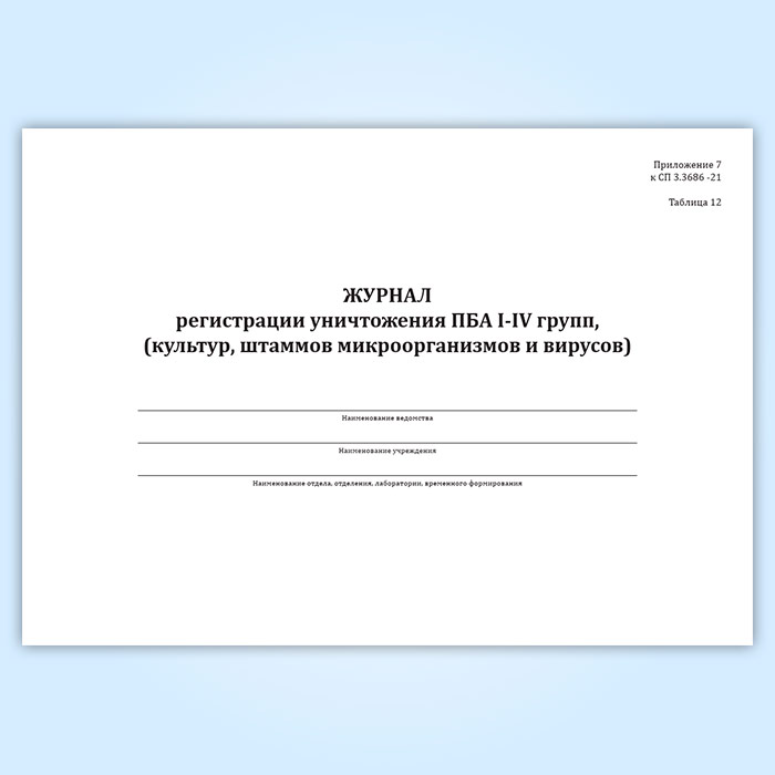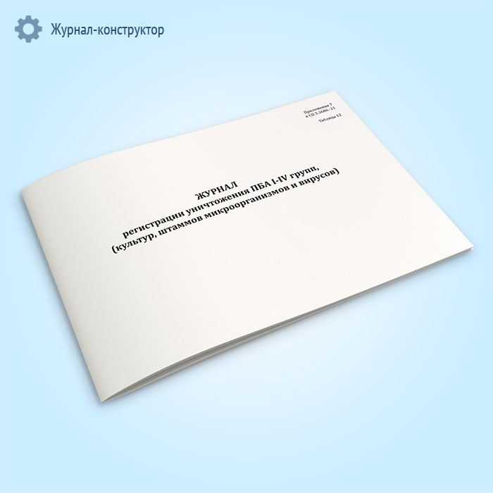 Журнал регистрации уничтожения ПБА I-IV групп, (культур, штаммов микроорганизмов и вирусов) в Сочи купить