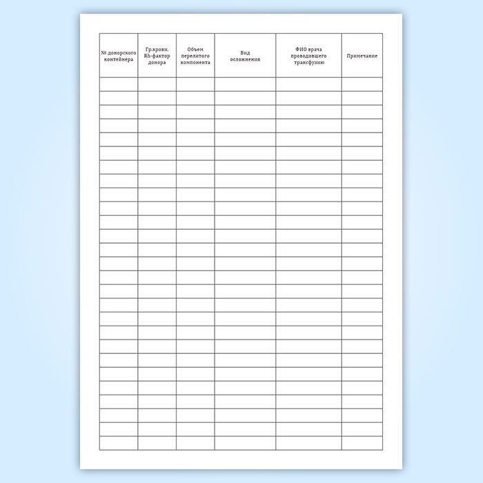 Журнал регистрации реакций и осложнений при проведении трансфузии крови и (или) ее компонентов в Сочи купить