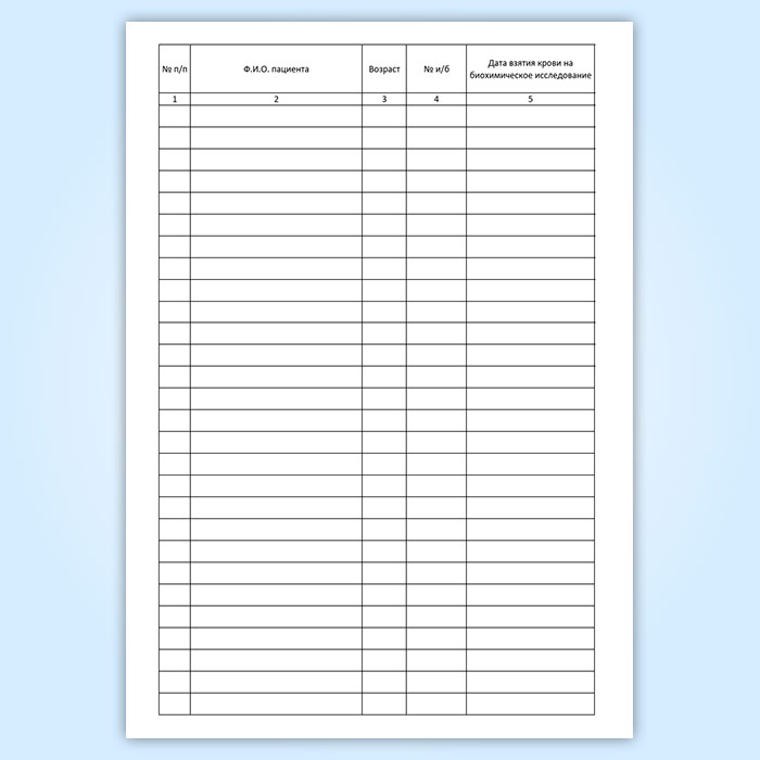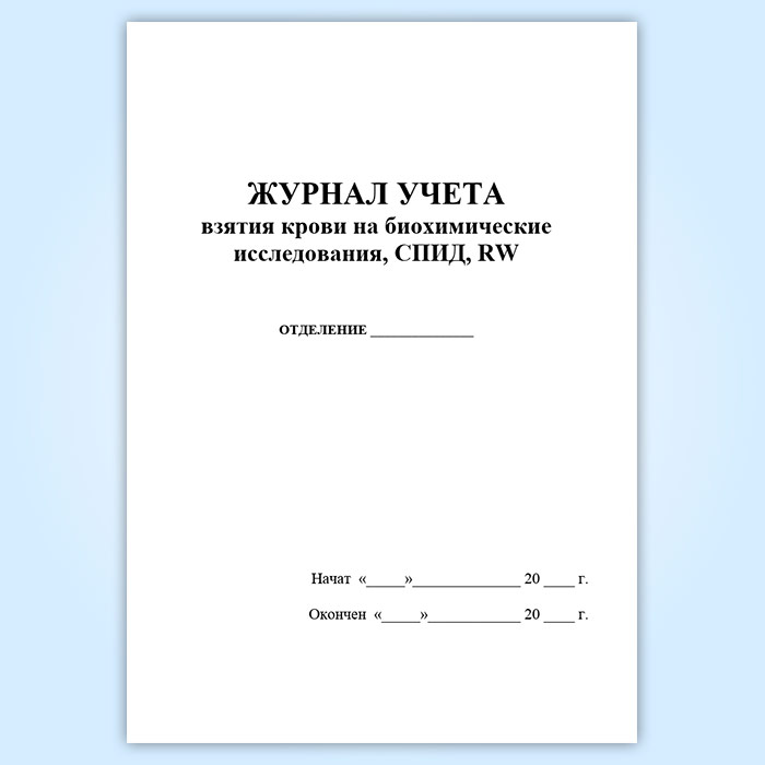 Журнал учета взятия крови на биохимические исследования, СПИД, RW в Сочи купить