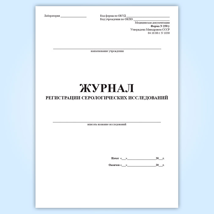 Журнал регистрации серологических исследований (форма 259/у) в Сочи купить