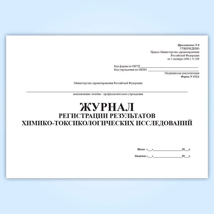 Журнал регистрации результатов химико-токсикологических исследований (форма 453у-06) в Сочи купить