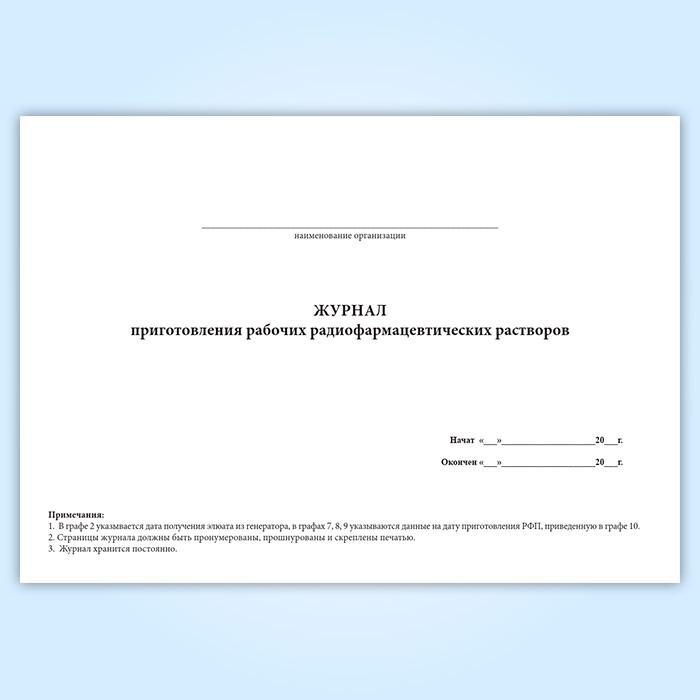 Журнал приготовления рабочих радиофармацевтических растворов в Сочи купить