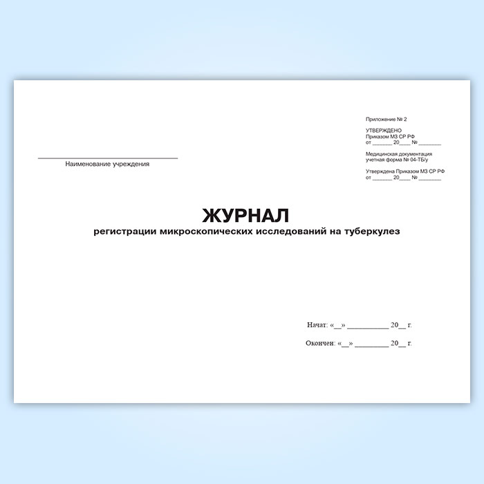 Журнал регистрации диагностического материала, собранного для микроскопических исследований на туберкулез (форма № 04-1-ТБ/у) в Сочи купить